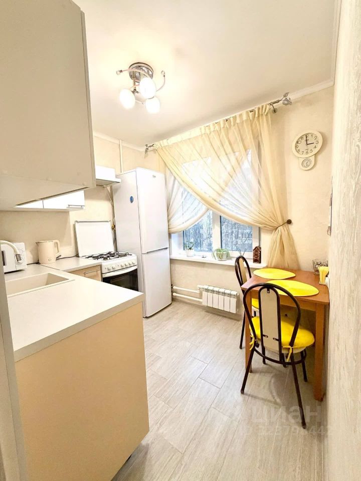 Кухня небольшая, но в ней эргономично разместились холодильник, удобные вместительные шкафы, тумбы и стол со стульями. Частично остается мебель и техника (обсуждается дополнительно).