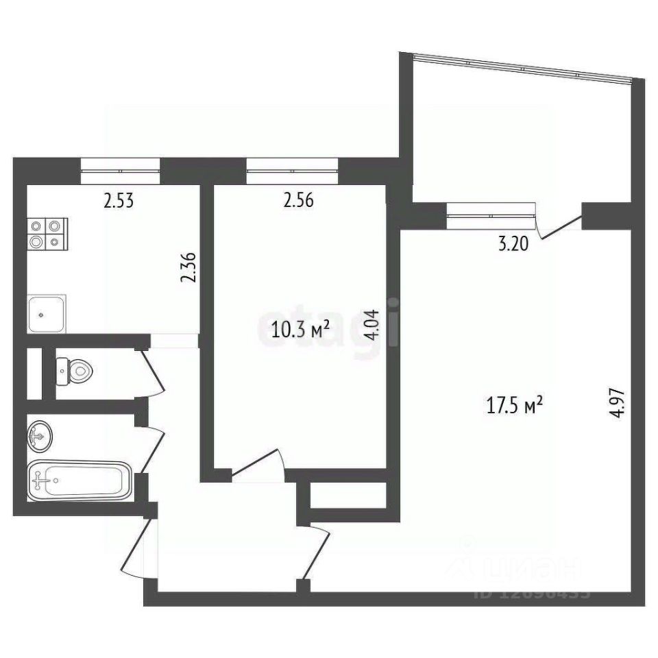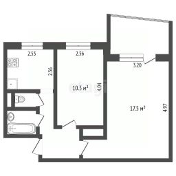 Квартира площадью 44.5кв м (без учета лоджии). Две изолированные комнаты: гостиная 17,5кв м и уютная спальня 10,3, кухня 6,0кв м. Просторная прихожая. Большая застекленная лоджия (как дополнительная комната).