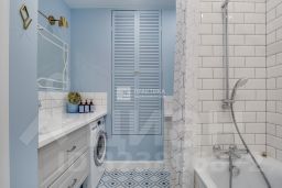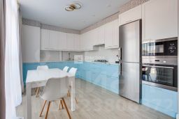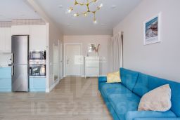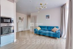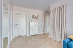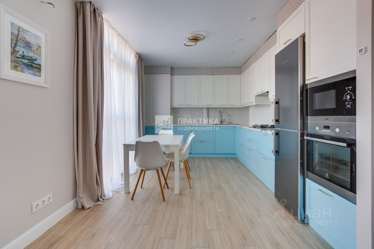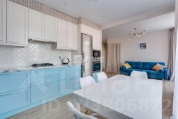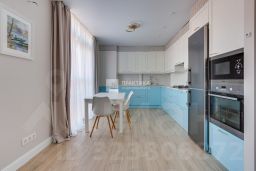 Квартира с современным ремонтом и грамотным зонированием пространства: просторная кухня с комфортной обеденной зоной и зоной отдыха, две изолированные комнаты, оборудованная гардеробная, достаточно мест хранения.