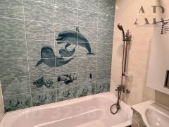 Квартира с косметическим ремонтом, который делали для себя, стены выровнены, оштукатурены и окрашены влагостойкой краской, на полу выложена паркетная доска. В санузле - плитка до потолка.