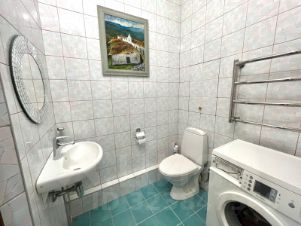 Квартира в собственности более 5 лет, один взрослый собственник. Приобреталась у застройщика. Общая площадь 122,7 кв.м, застеклённая лоджия, кухня 15 кв.м, два санузла, этаж 13\17. Потолки 2,80. В доме два лифта, грузовой и пассажирский. Чистый ухоженный подъезд с консьержем.