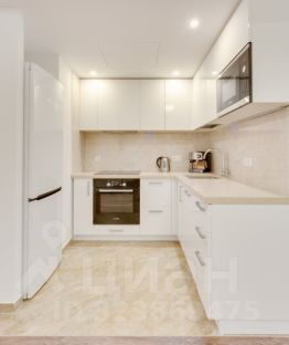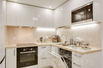 Кухня со встроенной техникой: индукционная варочная панель, СВЧ, духовой шкаф, посудомоечная машина, мойка, холодильник, кофе машина, чайник, а также полный комплект необходимой кухонной посуды и инструментов, обеденный и чайный сервизы на 6 персон.