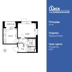 Продаётся 1-к квартира номер 199 общей площадью 37.3 кв.м. на 16-м этаже 17 этажного здания. Отделка Whitebox. Цена с учётом скидки.