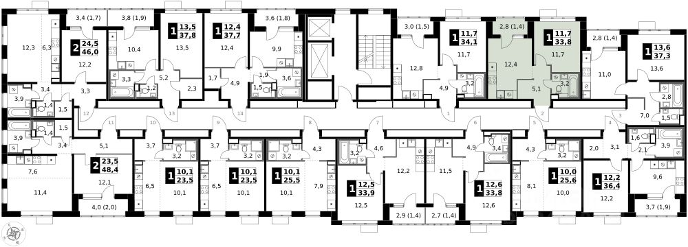 Продаётся 1-к квартира номер 100 общей площадью 33.8 кв.м. на 9-м этаже 17 этажного здания. Отделка Whitebox. Цена с учётом скидки.