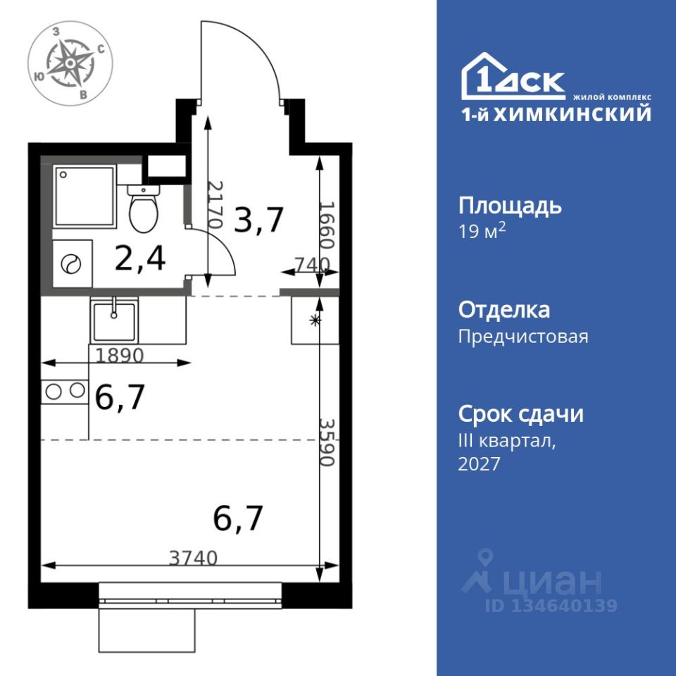 Продаётся квартира-студия номер 288 общей площадью 19.5 кв.м. на 5-м этаже 6 этажного здания. Отделка Whitebox. Цена с учётом скидки.