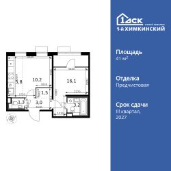 Продаётся 2-к квартира номер 334 общей площадью 41.1 кв.м. на 5-м этаже 6 этажного здания. Отделка Whitebox. Цена с учётом скидки.