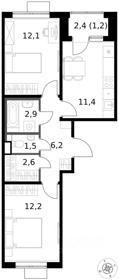 - Раздельный санузел - больше удобства для всех членов семьи.