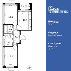 Продаётся 2-к квартира номер 322 общей площадью 50.1 кв.м. на 4-м этаже 6 этажного здания. Отделка Whitebox. Цена с учётом скидки.