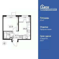 Продаётся 1-к квартира номер 603 общей площадью 33 кв.м. на 10-м этаже 17 этажного здания. Отделка Whitebox.