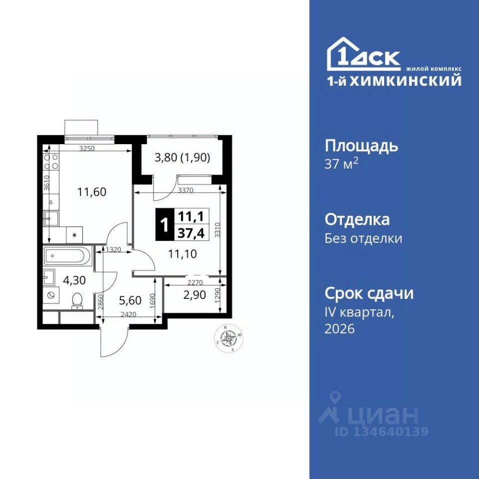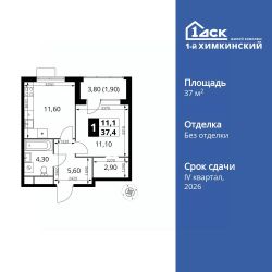 Продаётся 1-к квартира номер 262 общей площадью 37.4 кв.м. на 11-м этаже 16 этажного здания. Без отделки.