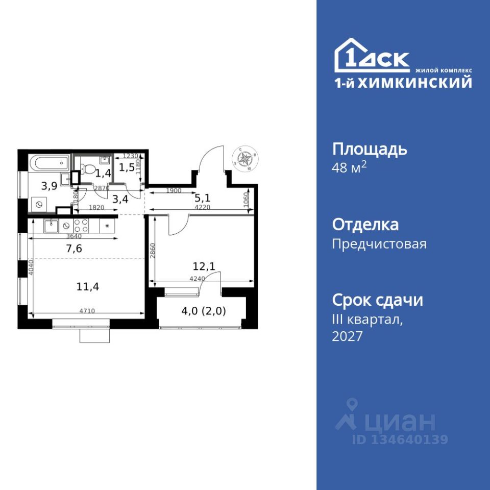 Продаётся 2-к квартира номер 193 общей площадью 48.4 кв.м. на 15-м этаже 17 этажного здания. Отделка Whitebox. Цена с учётом скидки.