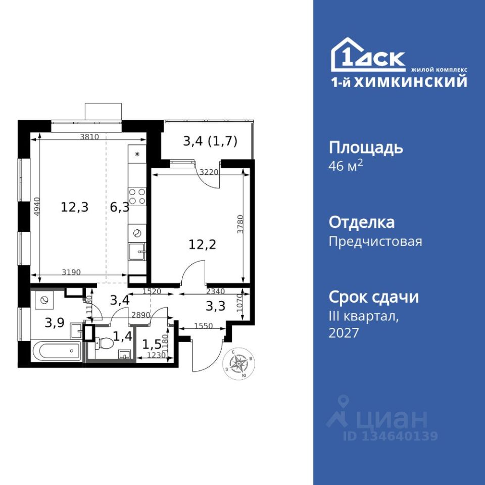 Продаётся 2-к квартира номер 208 общей площадью 46 кв.м. на 16-м этаже 17 этажного здания. Отделка Whitebox. Цена с учётом скидки.