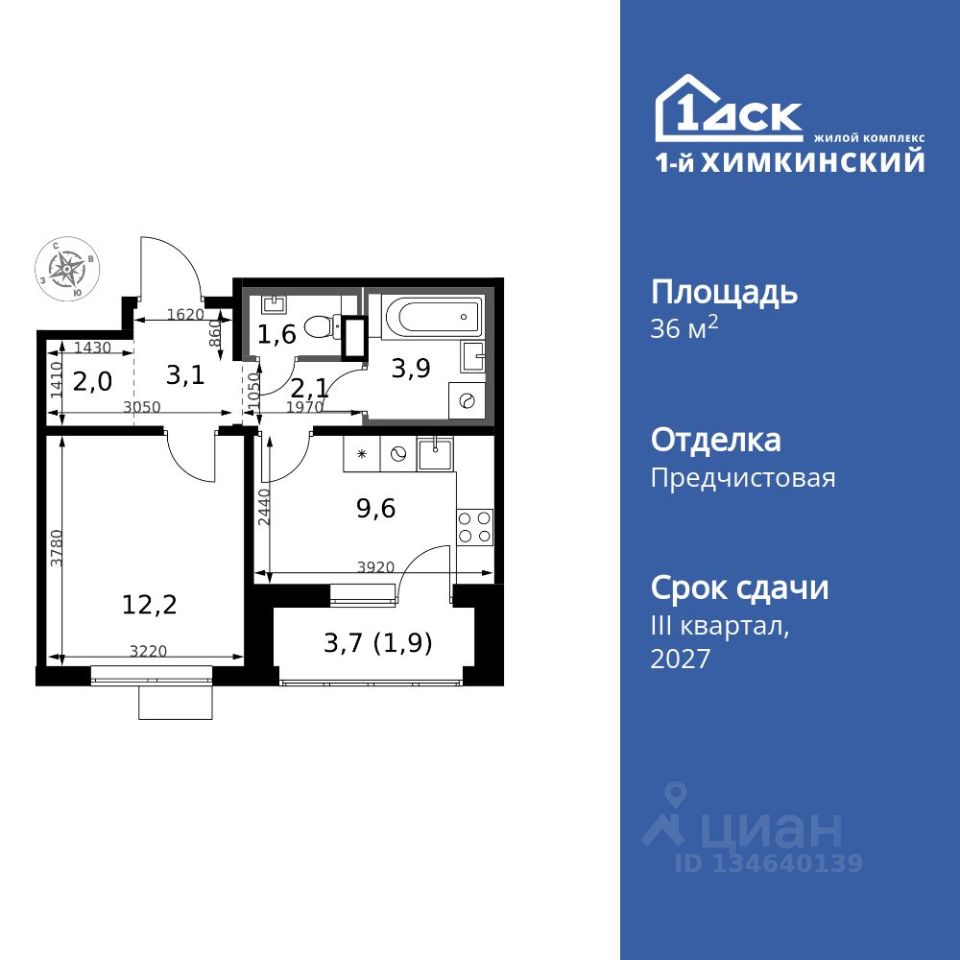 Продаётся 1-к квартира номер 32 общей площадью 36.4 кв.м. на 4-м этаже 17 этажного здания. Отделка Whitebox. Цена с учётом скидки.
