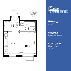 Продаётся квартира-студия номер 33 общей площадью 25.6 кв.м. на 4-м этаже 17 этажного здания. Отделка Whitebox. Цена с учётом скидки.