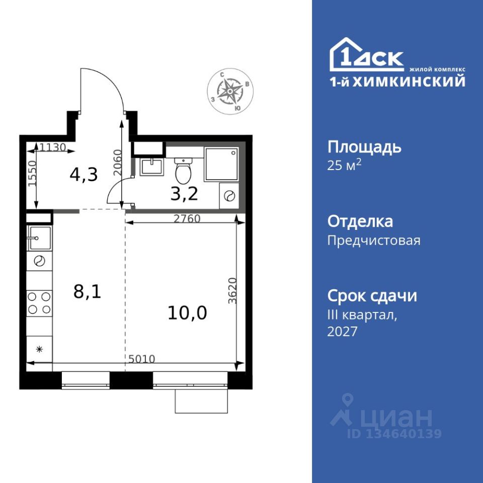Продаётся квартира-студия номер 117 общей площадью 25.6 кв.м. на 10-м этаже 17 этажного здания. Отделка Whitebox. Цена с учётом скидки.