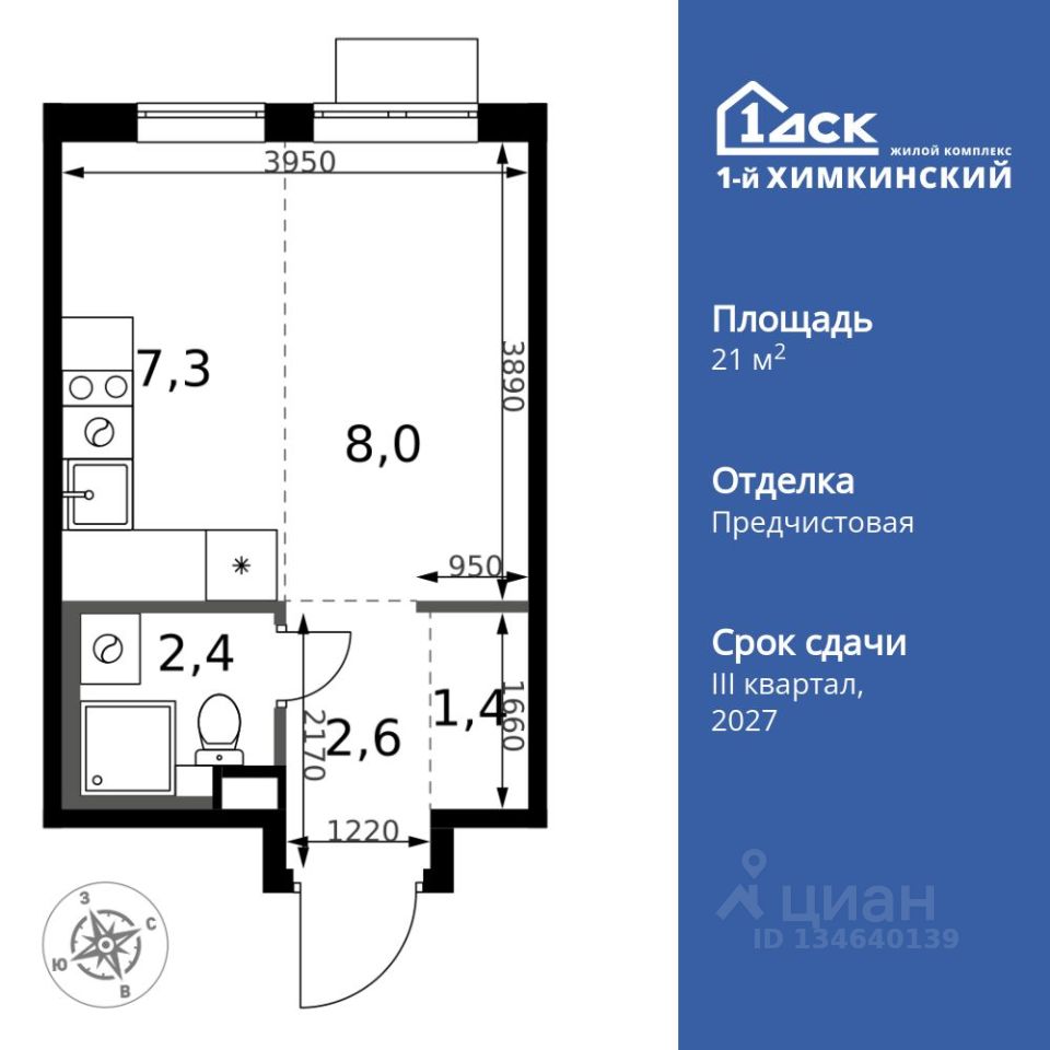 Продаётся квартира-студия номер 291 общей площадью 21.7 кв.м. на 5-м этаже 6 этажного здания. Отделка Whitebox. Цена с учётом скидки.