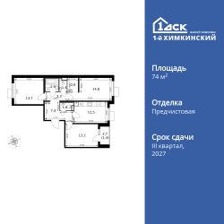 Продаётся 3-к квартира номер 266 общей площадью 74.8 кв.м. на 3-м этаже 6 этажного здания. Отделка Whitebox. Цена с учётом скидки.