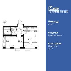 Продаётся 2-к квартира номер 501 общей площадью 43.6 кв.м. на 4-м этаже 7 этажного здания. Отделка Whitebox. Цена с учётом скидки.