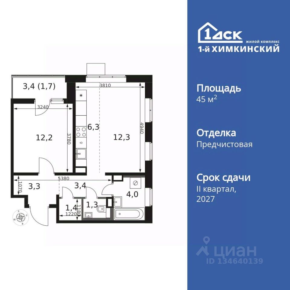 Продаётся 2-к квартира номер 73 общей площадью 45.9 кв.м. на 7-м этаже 17 этажного здания. Отделка Whitebox.