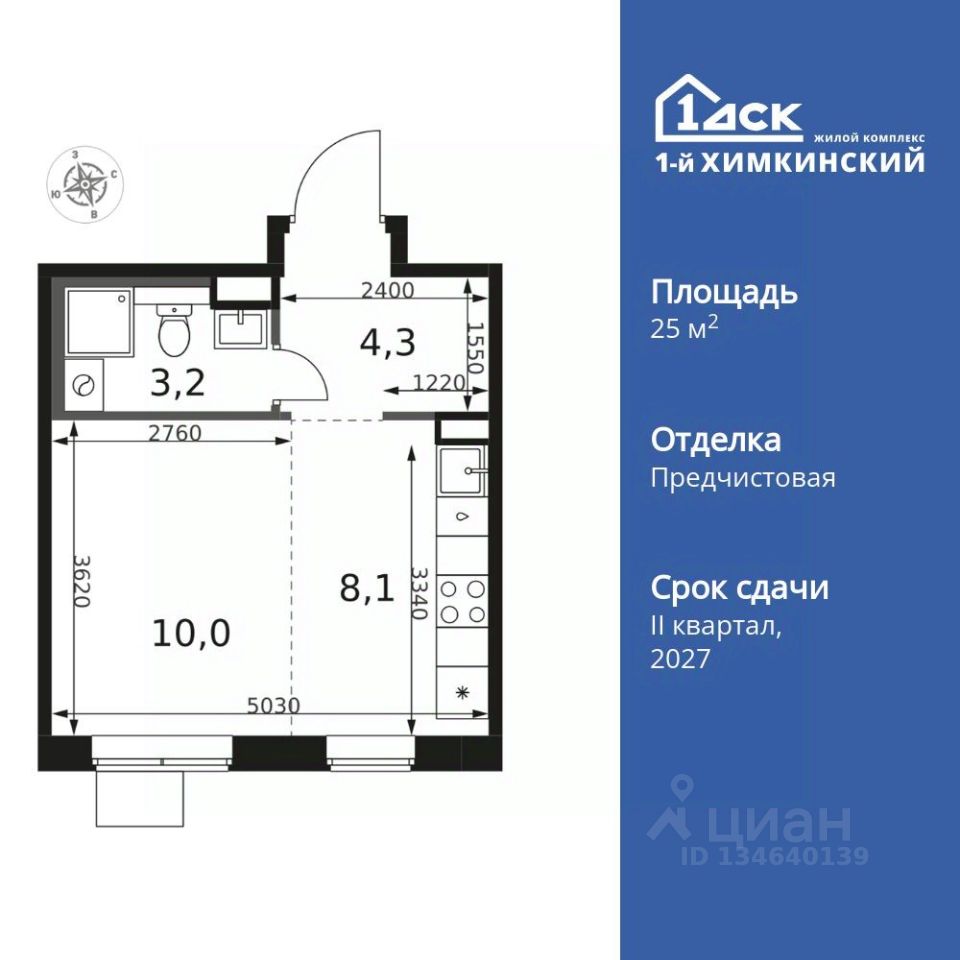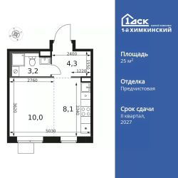 Продаётся квартира-студия номер 122 общей площадью 25.6 кв.м. на 10-м этаже 17 этажного здания. Отделка Whitebox.
