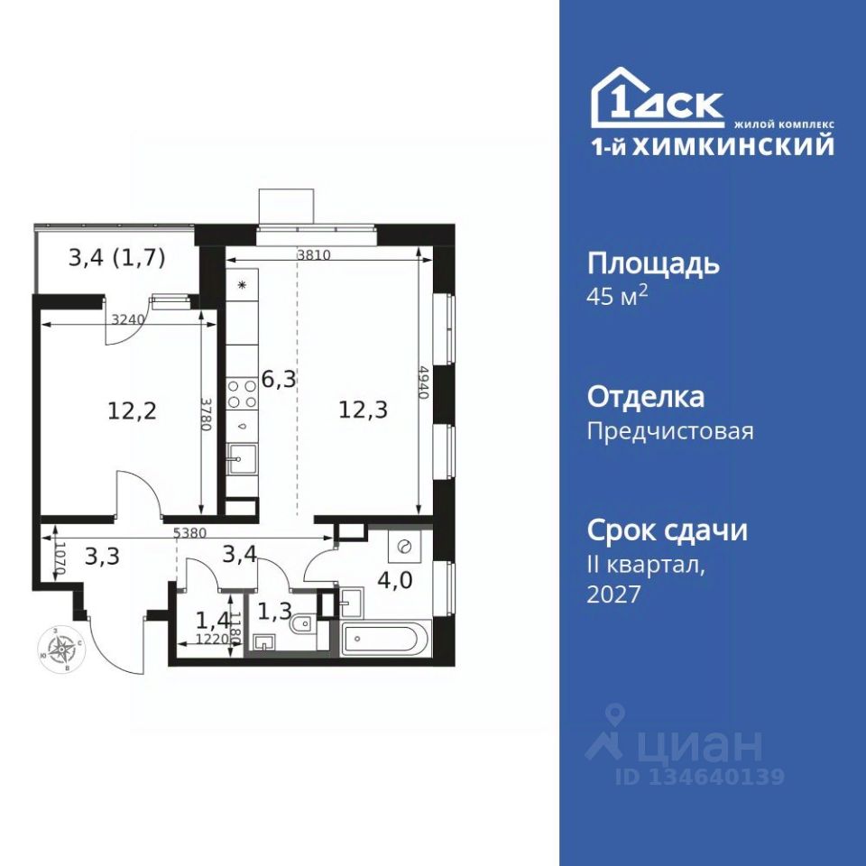 Продаётся 2-к квартира номер 129 общей площадью 45.9 кв.м. на 11-м этаже 17 этажного здания. Отделка Whitebox.