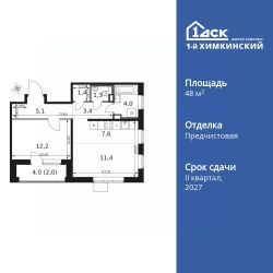 Продаётся 2-к квартира номер 172 общей площадью 48.4 кв.м. на 14-м этаже 17 этажного здания. Отделка Whitebox.