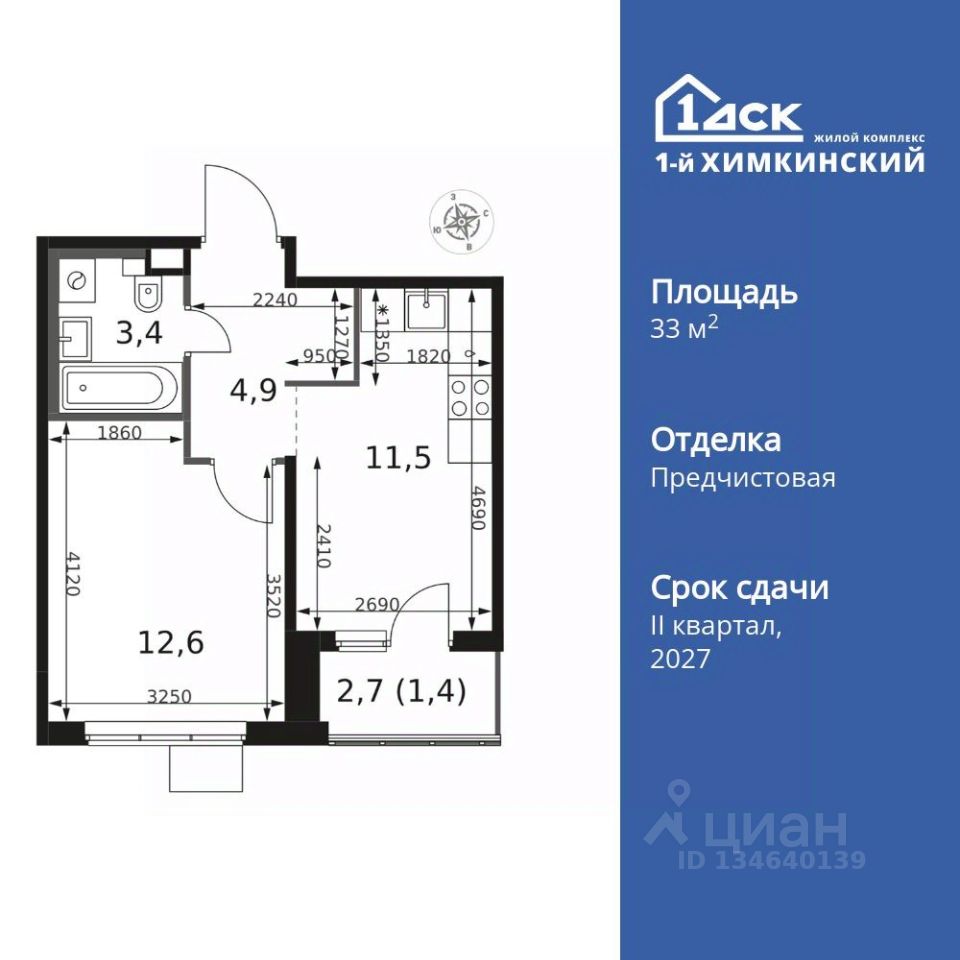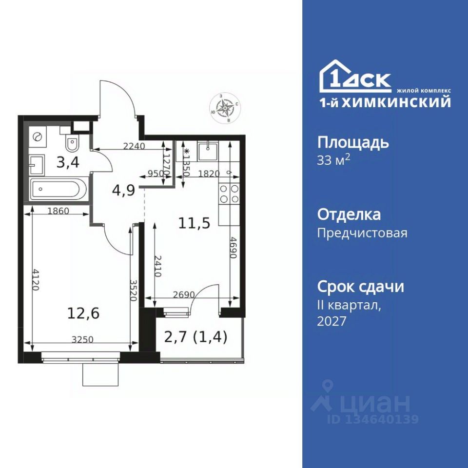 Продаётся 1-к квартира номер 177 общей площадью 33.8 кв.м. на 14-м этаже 17 этажного здания. Отделка Whitebox.