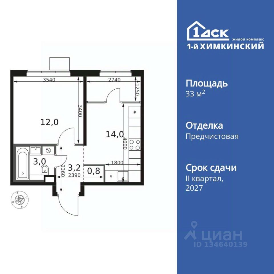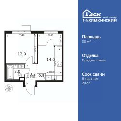 Продаётся 1-к квартира номер 583 общей площадью 33 кв.м. на 8-м этаже 17 этажного здания. Отделка Whitebox.