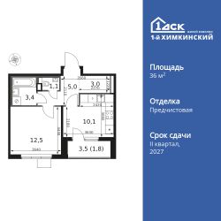 Продаётся 1-к квартира номер 607 общей площадью 36.9 кв.м. на 11-м этаже 17 этажного здания. Отделка Whitebox.