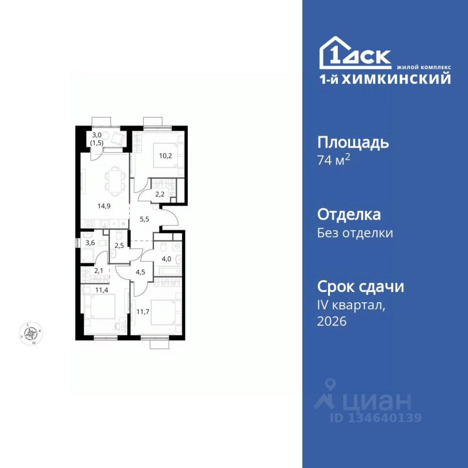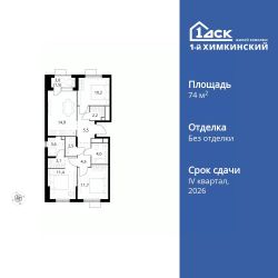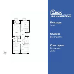 Продаётся 3-к квартира номер 61 общей площадью 74.1 кв.м. на 9-м этаже 17 этажного здания. Без отделки.