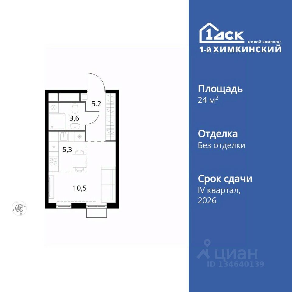 Продаётся квартира-студия номер 80 общей площадью 24.6 кв.м. на 12-м этаже 17 этажного здания. Без отделки.
