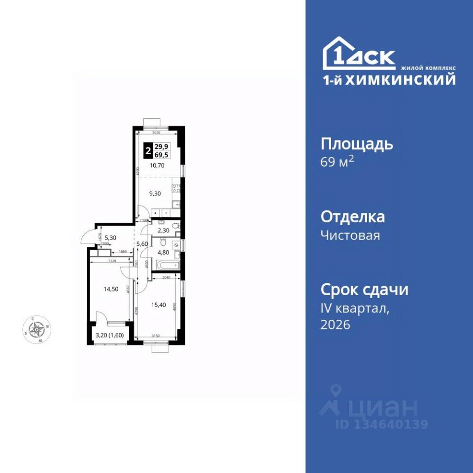 Продаётся 3-к квартира номер 392 общей площадью 69.5 кв.м. на 3-м этаже 7 этажного здания. Чистовая отделка.