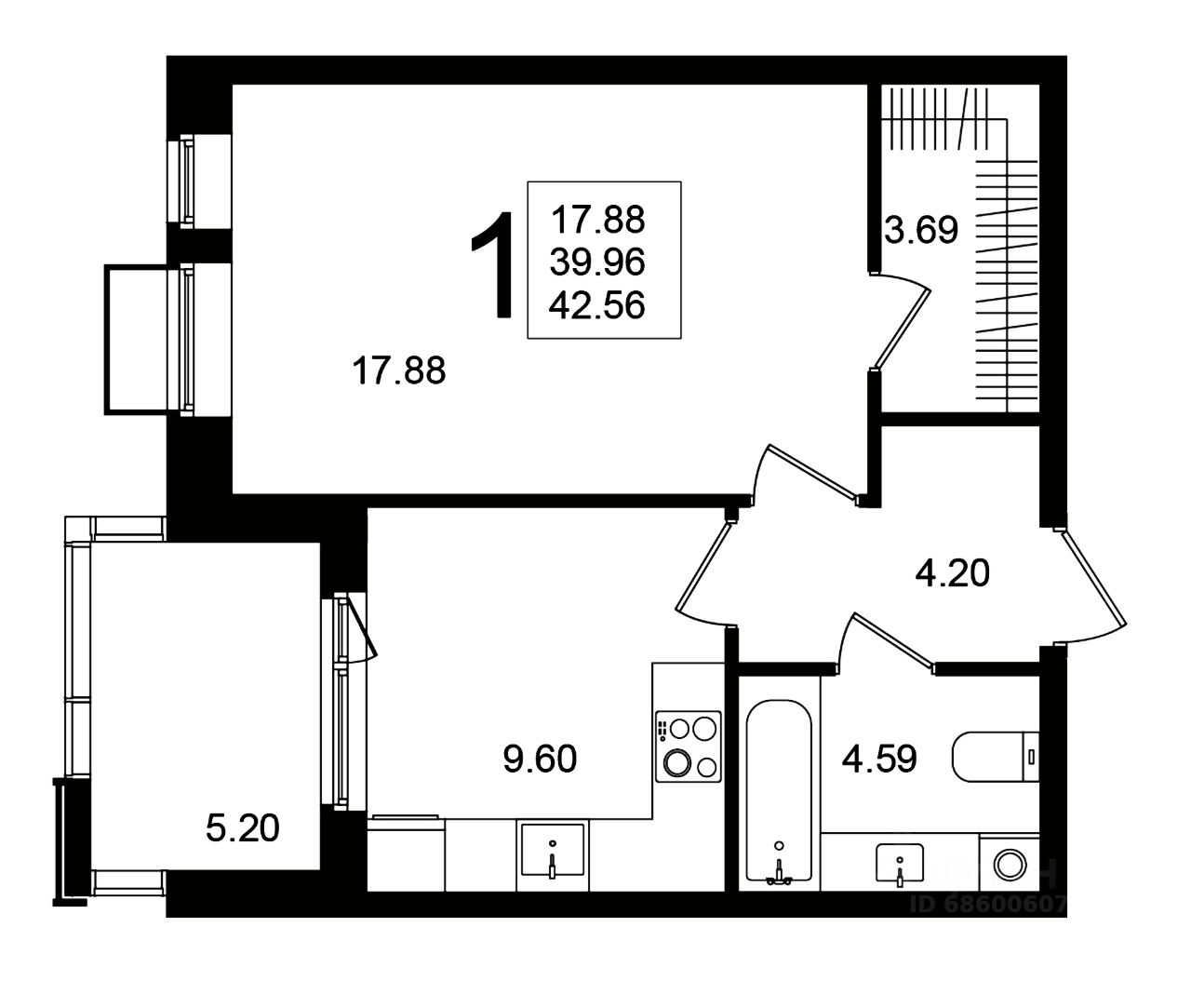 Продаётся 1-комнатная квартира в строящемся доме (Корпус 7), срок сдачи: 1-кв. 2026, общей площадью 42.56 кв.м., на 2 этаже.