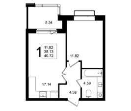 Продаётся 1-комнатная квартира в строящемся доме (Корпус 8), срок сдачи: 4-кв. 2025, общей площадью 40.72 кв.м., на 5 этаже.