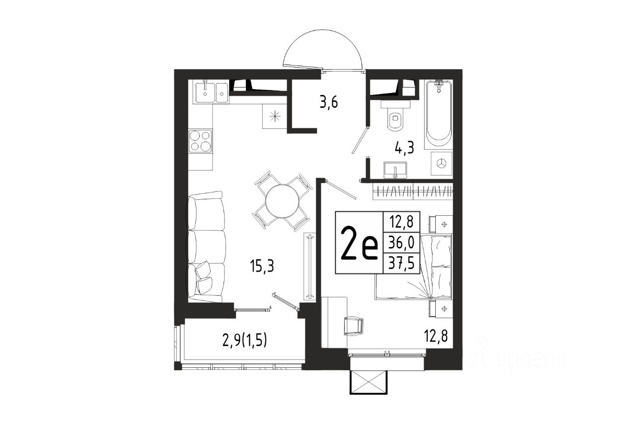 Продаётся 1-комнатная квартира в строящемся доме (Корпус 8 (2 очередь)), общей площадью 37.50 кв.м., на 3 этаже.