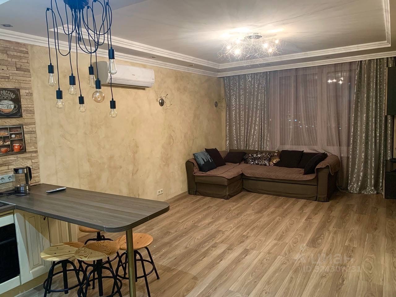 Функциональная планировка с просторной кухней-гостиной и спальней. Современный ремонт .