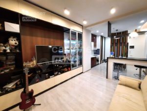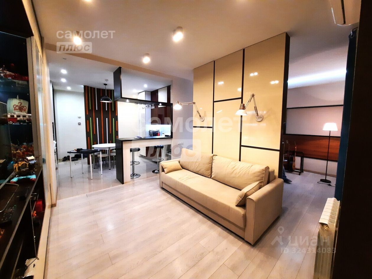 Имеется просторная гардеробная, барная стойка и правильные стилистические решения в виде дизайнерских стен, разграничивающих пространство.