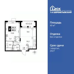 Продаётся 2-к квартира номер 406 общей площадью 49.5 кв.м. на 8-м этаже 17 этажного здания. Без отделки.