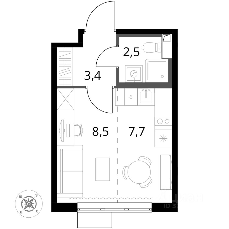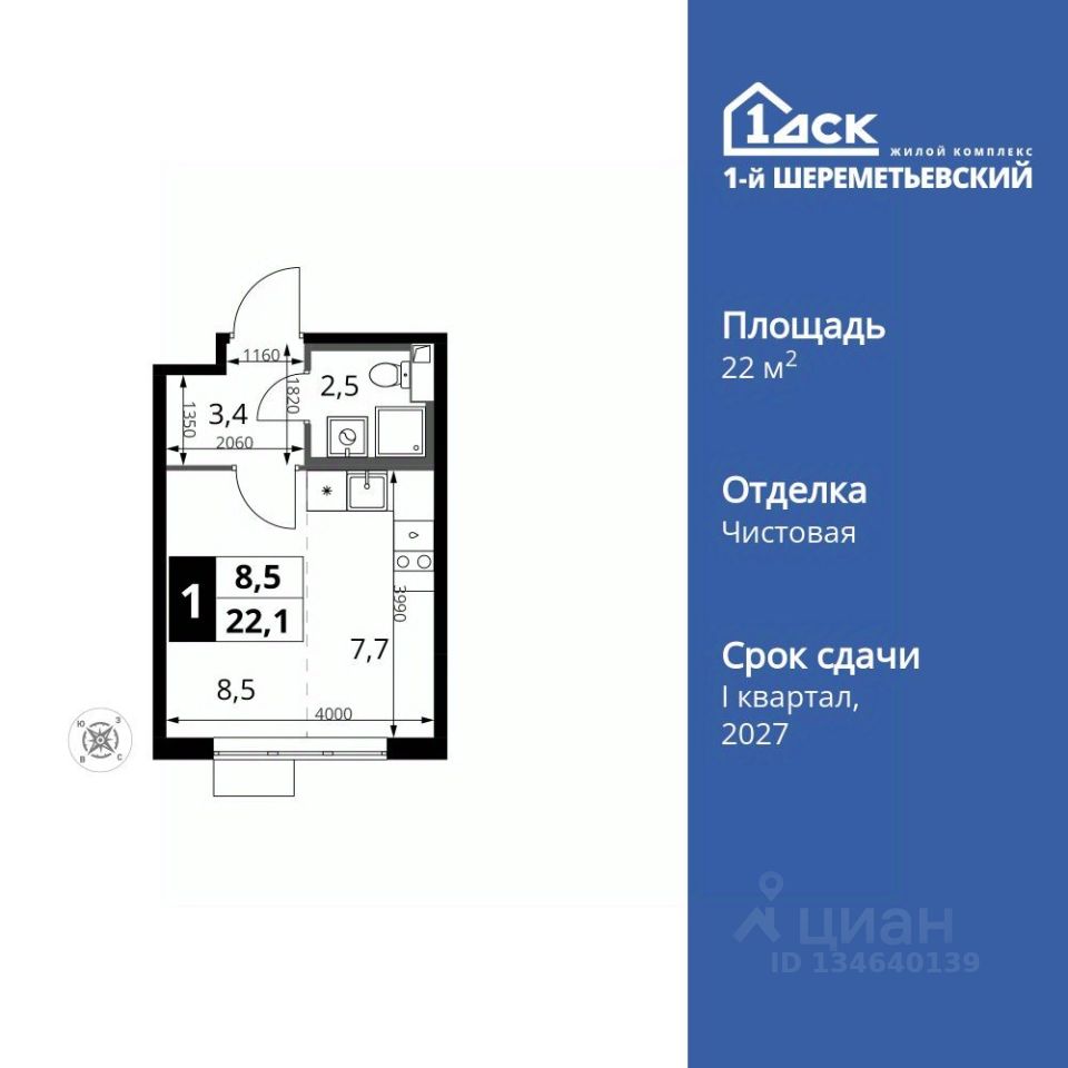 Продаётся квартира-студия номер 970 общей площадью 22.1 кв.м. на 11-м этаже 16 этажного здания. Чистовая отделка.
