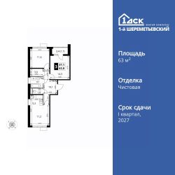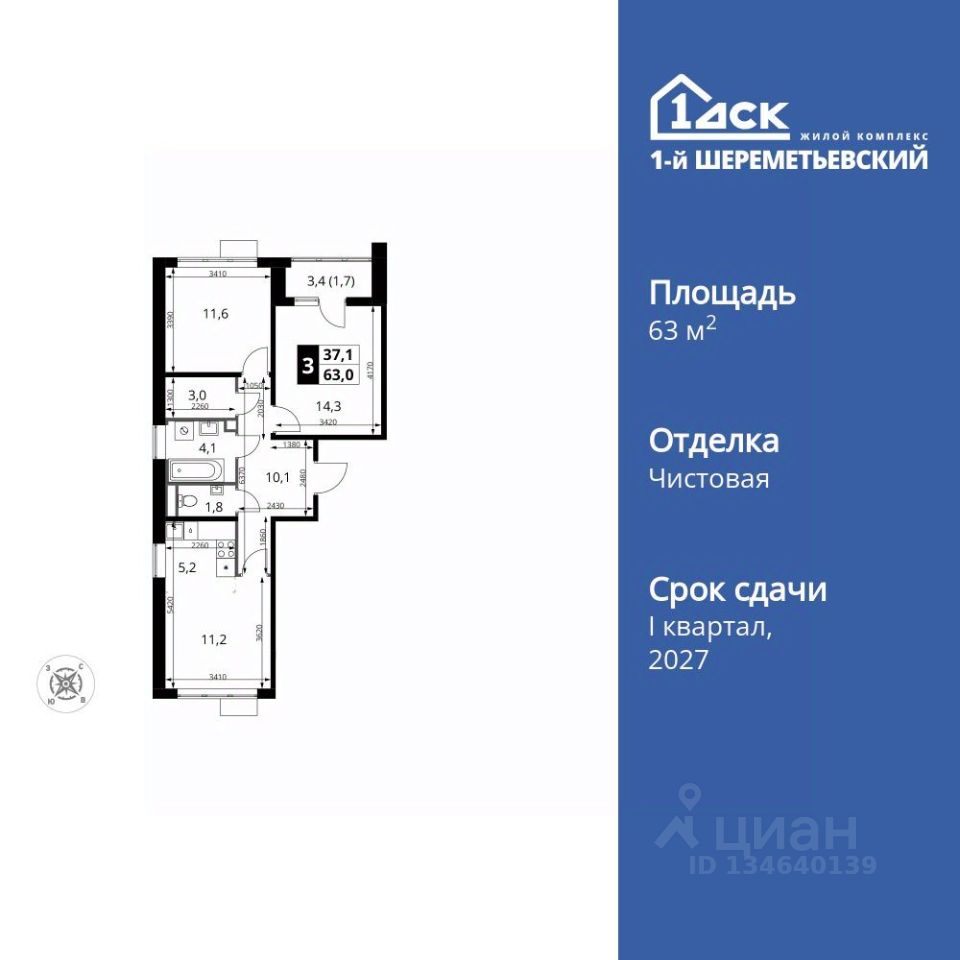 Продаётся 3-к квартира номер 1055 общей площадью 63 кв.м. на 6-м этаже 16 этажного здания. Чистовая отделка. Цена с учётом скидки.