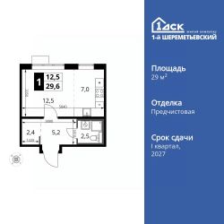 Продаётся квартира-студия номер 290 общей площадью 29.6 кв.м. на 11-м этаже 16 этажного здания. Отделка Whitebox.