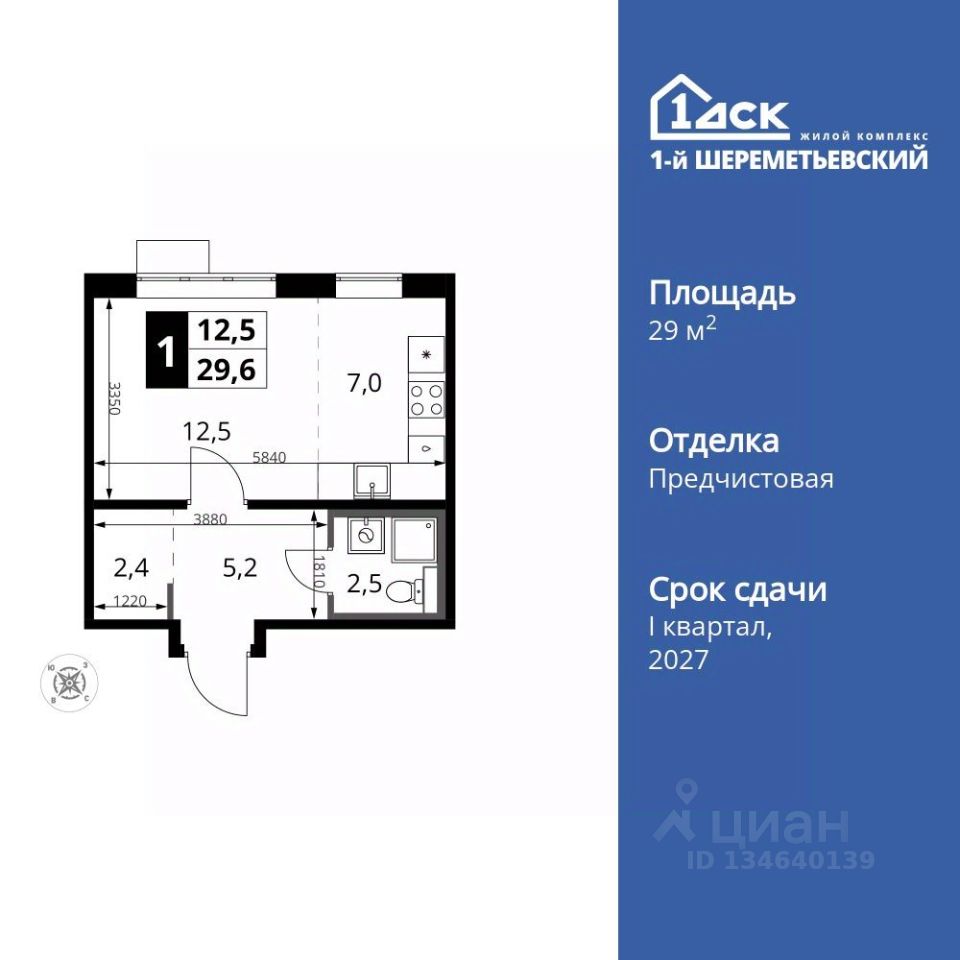 Продаётся квартира-студия номер 194 общей площадью 29.6 кв.м. на 3-м этаже 16 этажного здания. Отделка Whitebox.