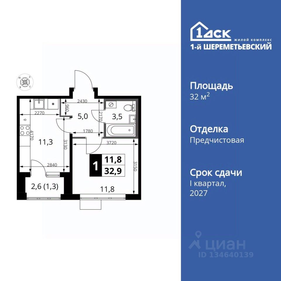Продаётся 1-к квартира номер 236 общей площадью 32.9 кв.м. на 6-м этаже 16 этажного здания. Отделка Whitebox. Цена с учётом скидки.