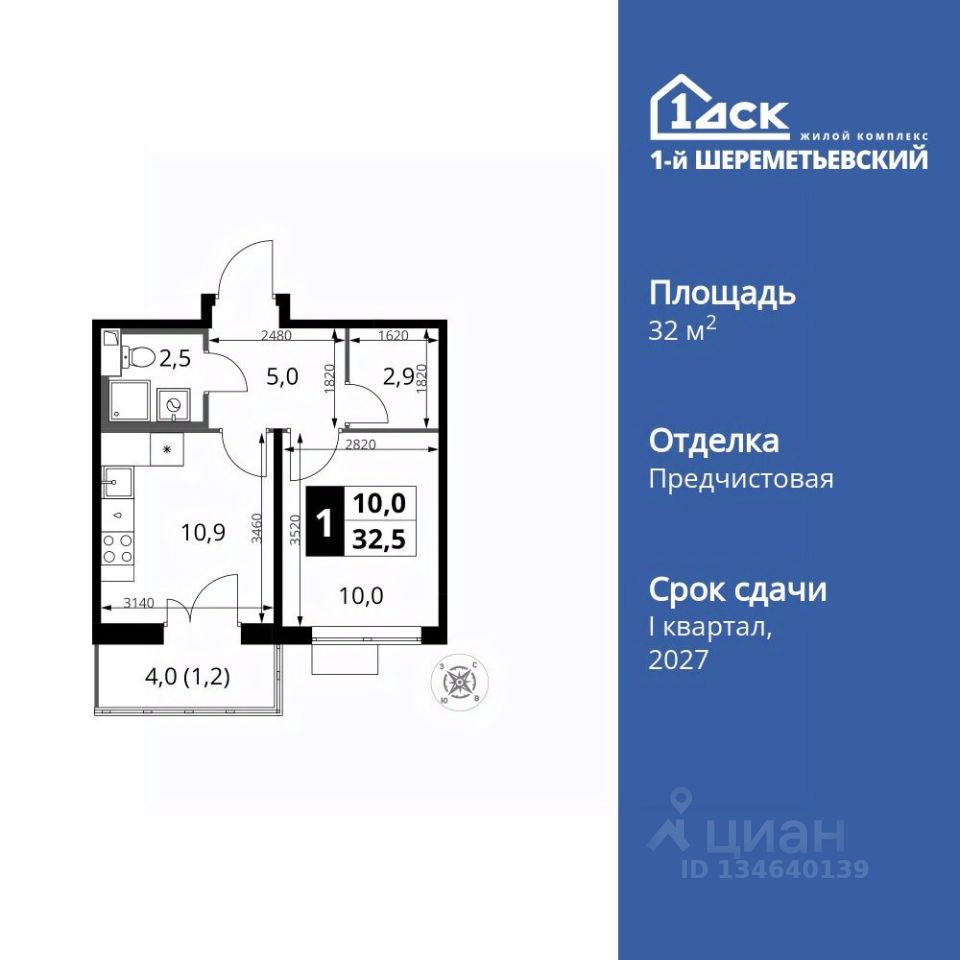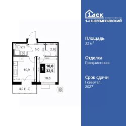 Продаётся 1-к квартира номер 543 общей площадью 32.5 кв.м. на 6-м этаже 16 этажного здания. Отделка Whitebox. Цена с учётом скидки.