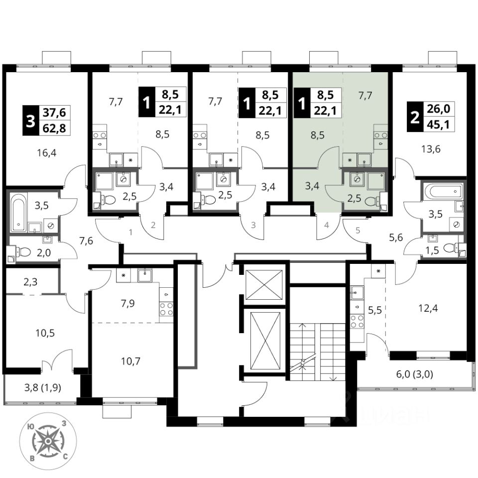 Продаётся квартира-студия номер 724 общей площадью 22.1 кв.м. на 5-м этаже 16 этажного здания. Чистовая отделка.