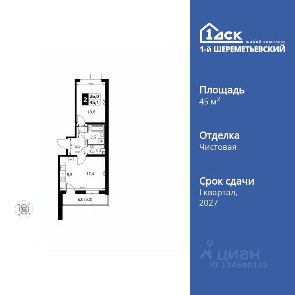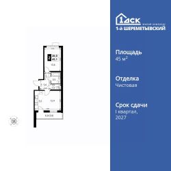 Продаётся 2-к квартира номер 730 общей площадью 45.1 кв.м. на 6-м этаже 16 этажного здания. Чистовая отделка. Цена с учётом скидки.