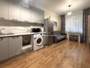 Просторная кухня совмещенная с гостиной в современном стиле open space и уютная спальня. Квартира полностью меблирована и готова к проживанию. Окна выходят в тихий двор.