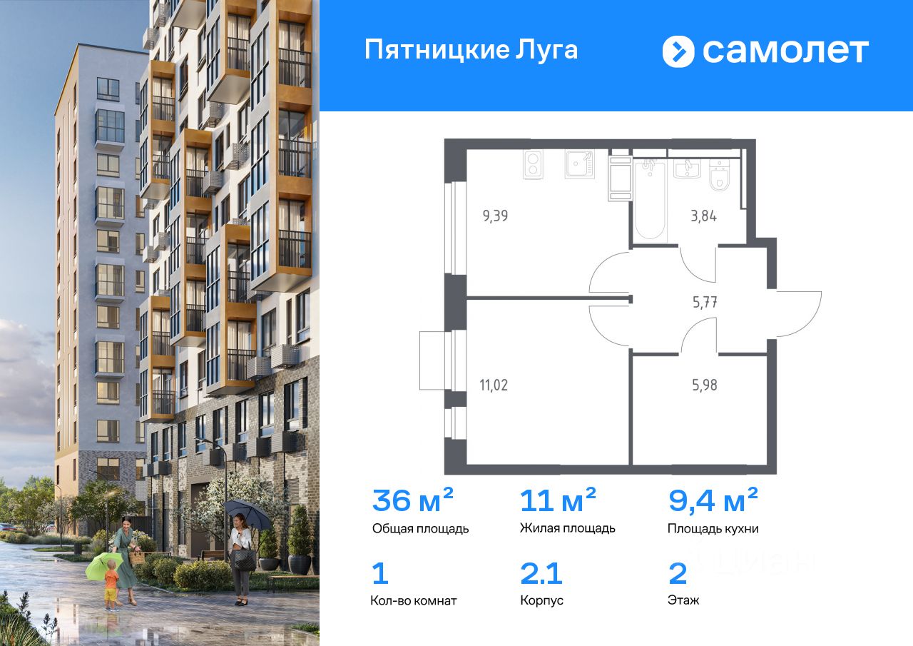 Строим кварталы для жизни с заботой о будущем. Предлагается 1-комнатная квартира комфорт-класса 36 кв.м в корпусе 2.1 на 2 этаже, в ЖК "Пятницкие Луга"