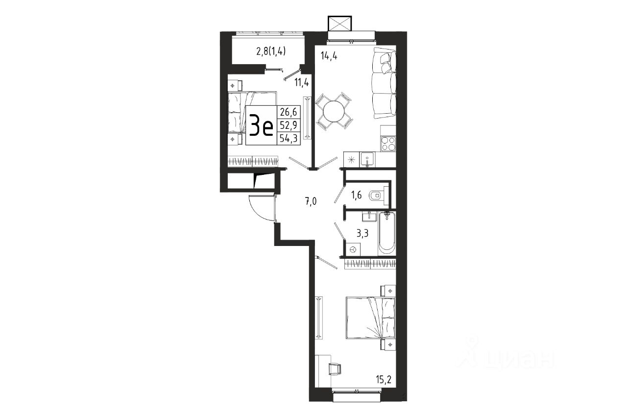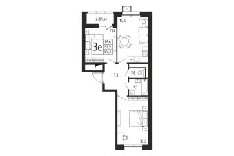 Продаётся 2-комнатная квартира в строящемся доме (Корпус 8 (2 очередь)), общей площадью 54.30 кв.м., на 3 этаже.