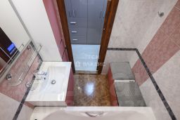 Площадь квартиры составляет 77,6 метра (без учета 6-метровой лоджии и 2-метрового застекленного балкона). Квартира распашонка, окна на две стороны дома, всегда светлая и быстро проветривается. Изолированные комнаты: 17,9 метров (с выходом на застекленный балкон), 13,9 метров (с выходом на 6-ти метровую лоджию) и спальня 13,9 метров. Во всех комнатах установлены кондиционеры, предусмотрено зонированное освещение. Просторный коридор площадью 13,4 метра, укомплектован несколькими шкафами с разноформатной системой хранения. В кухне 10,1 метра кухонный гарнитур со встроенной современной бытовой техникой: варочная панель, духовой шкаф, микроволновая печь, большая посудомоечная машина, предусмотрено место и выводы под стиральную машину. Организована уютная столовая зона для семейных ужинов и приема гостей. Раздельный санузел в плитке в отличном состоянии.